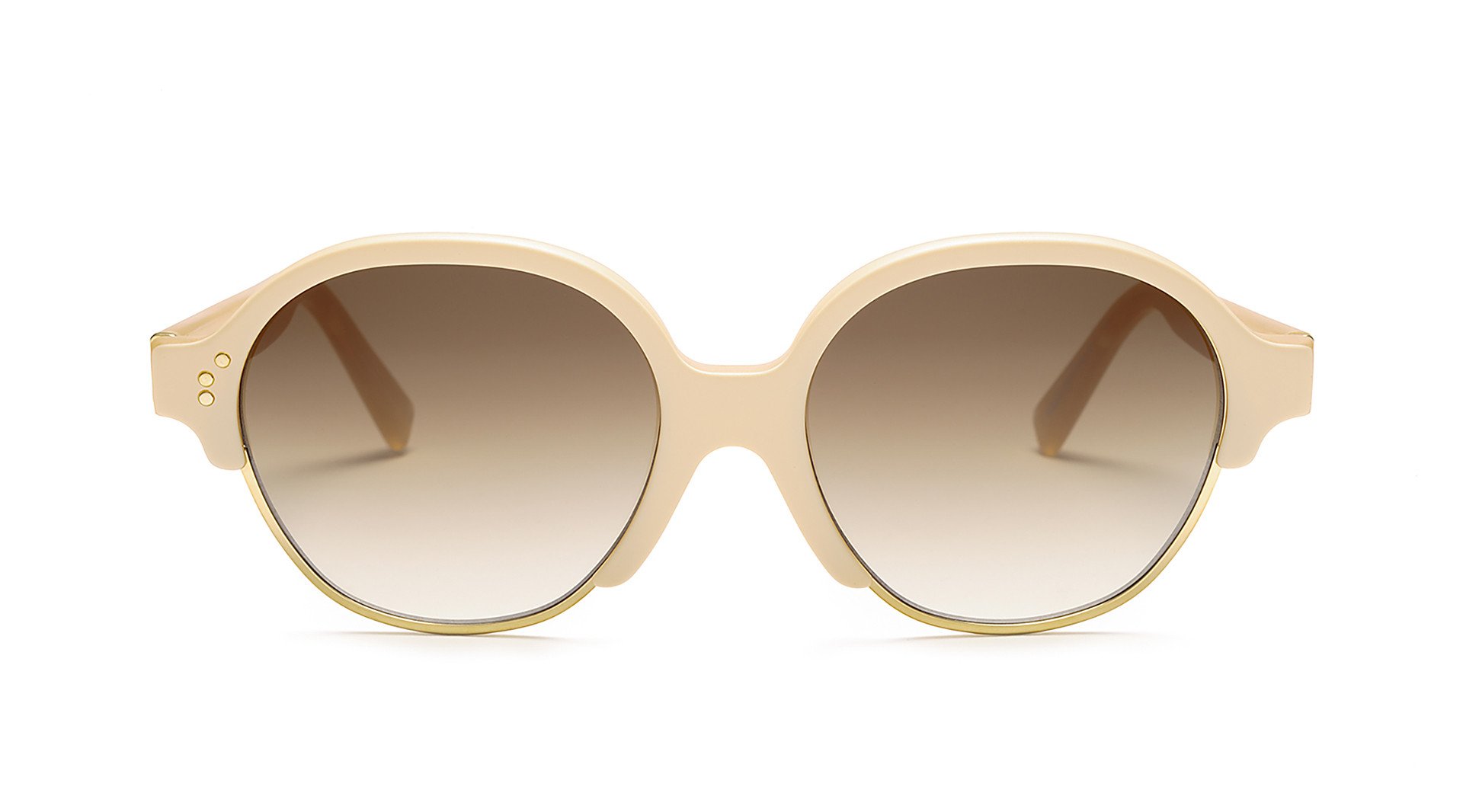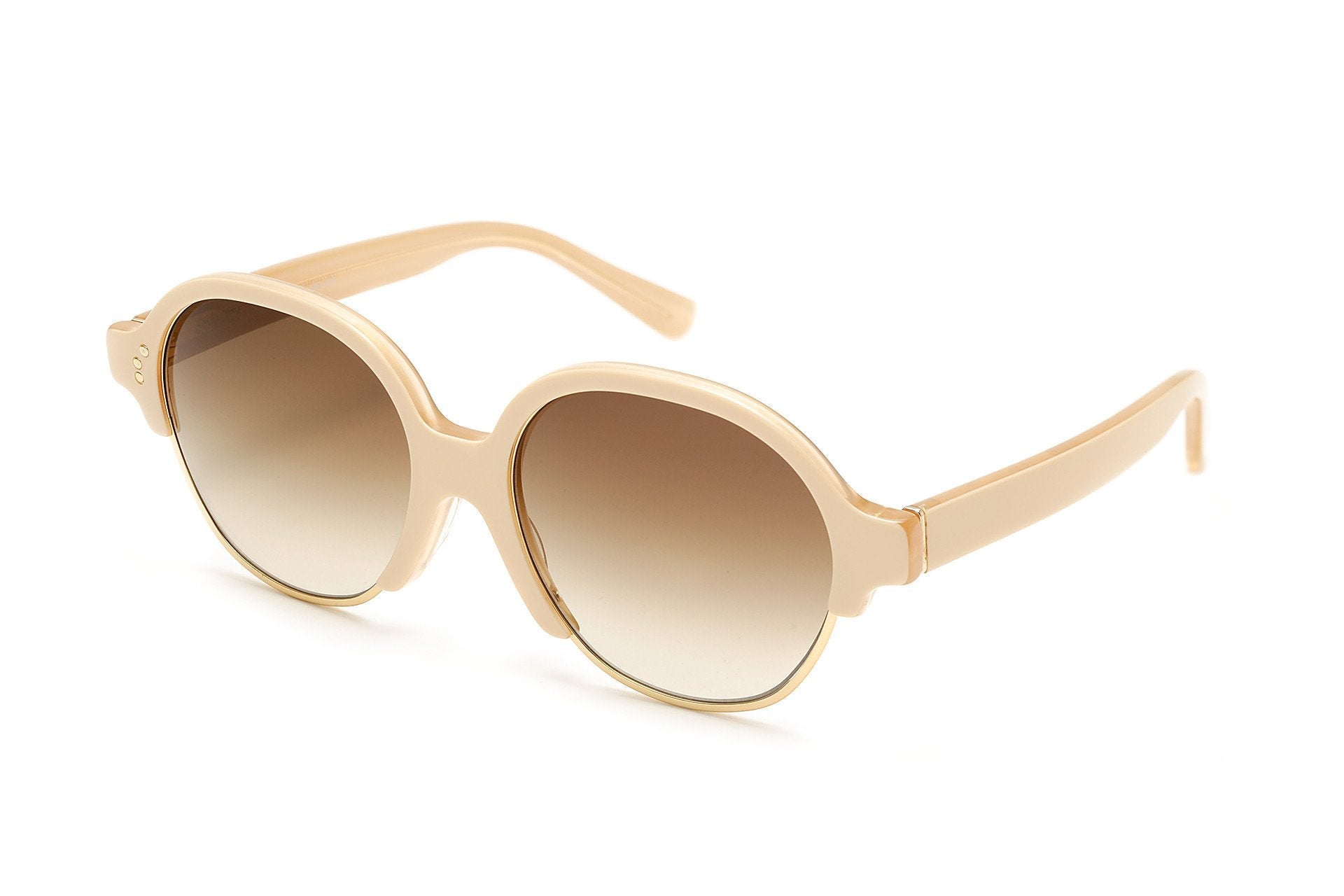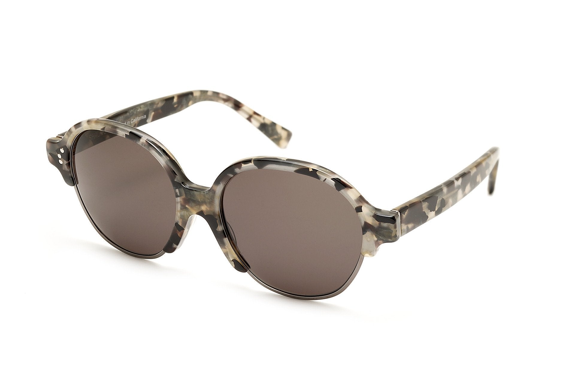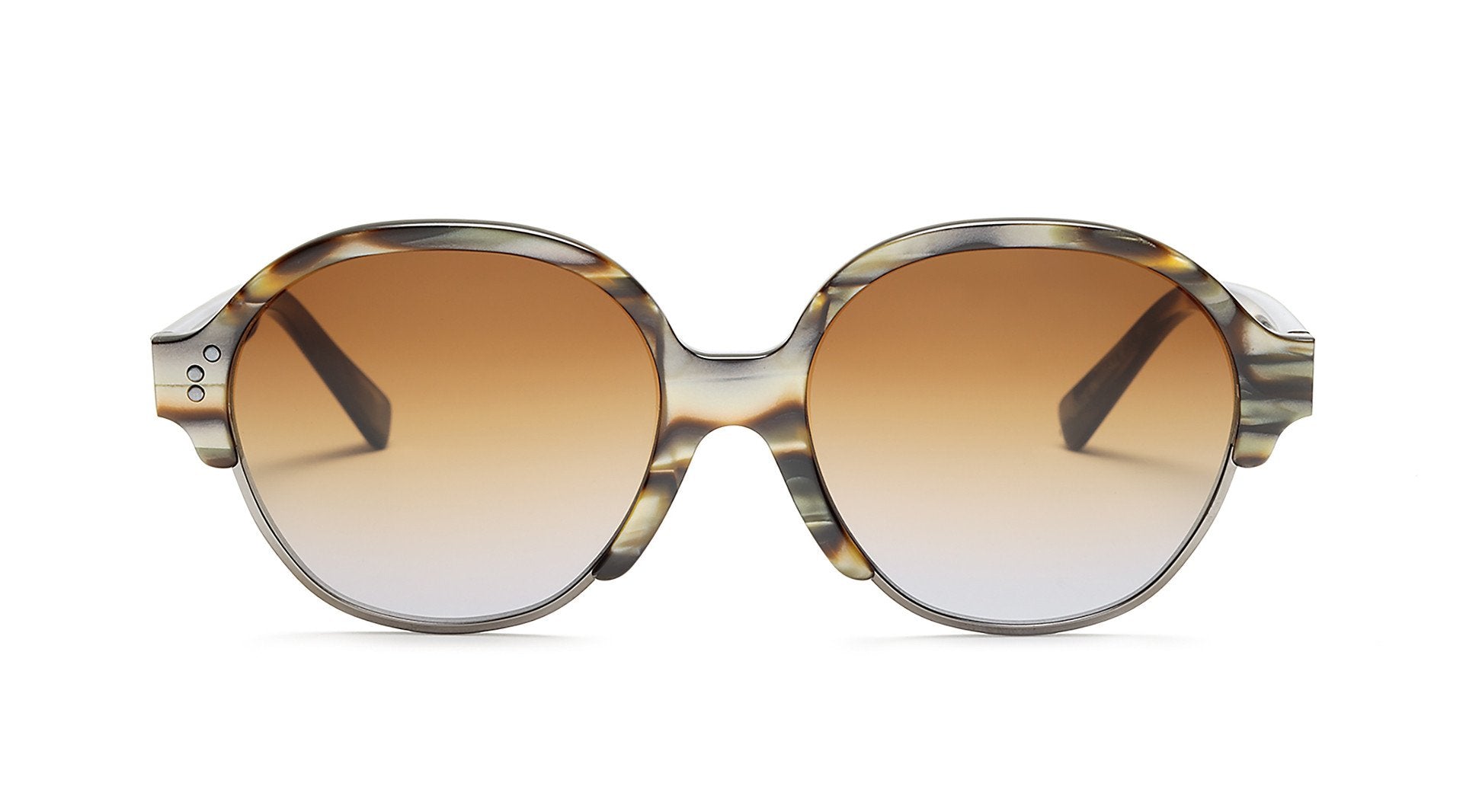 A glamorous and creative frame. The distinct round silhouette is given maximum impact by the interplay of materials on the frame front.